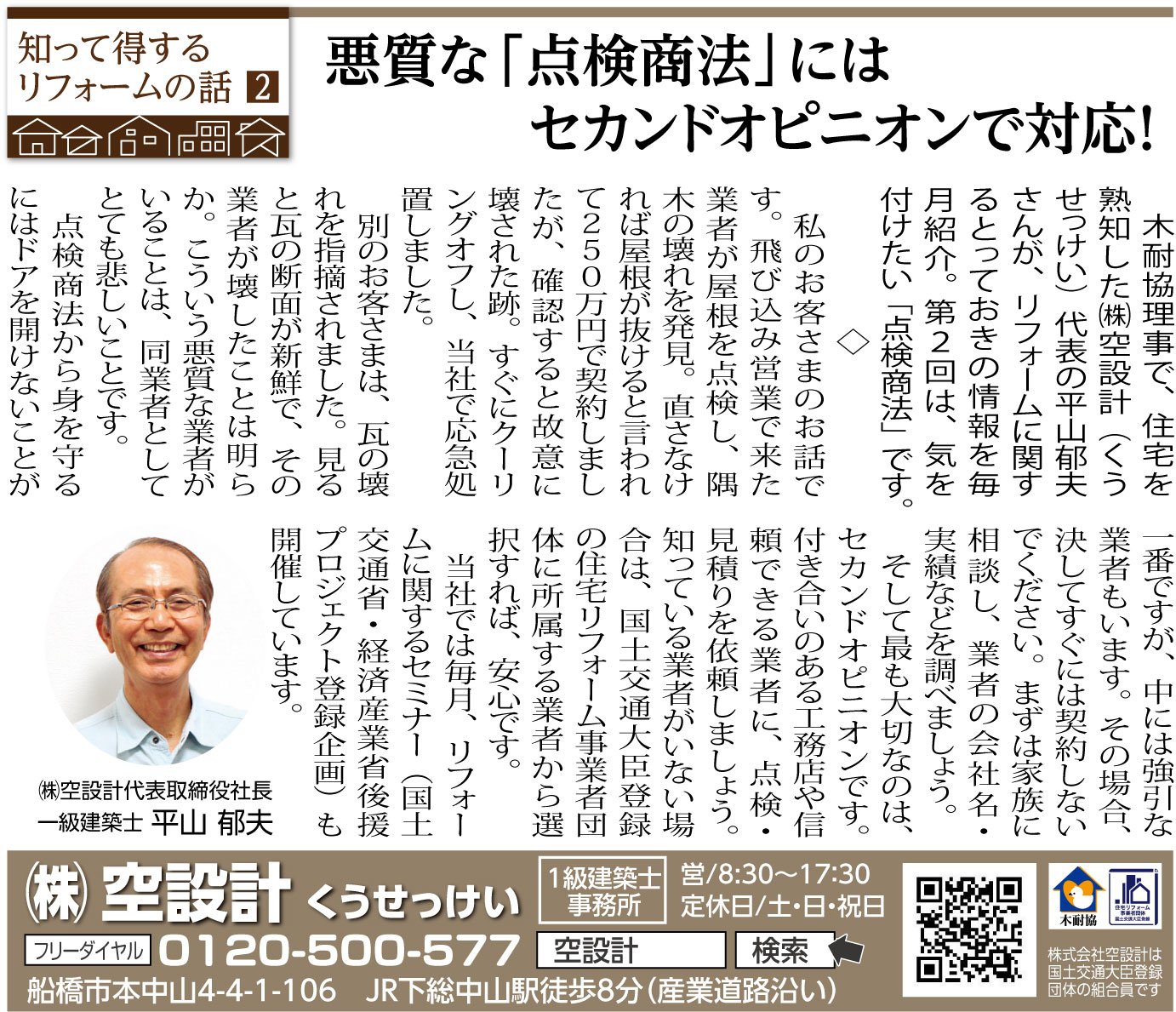 ホーム スタッフブログ 前の記事 一覧 次の記事 02 悪質な「点検商法」にはセカンドオピニオンで対応! 2023/08/02(水) いちかわ新聞連載コラム 前の記事 一覧 次の記事 1ページ (全8ページ中) 1 2 3 4 5 6