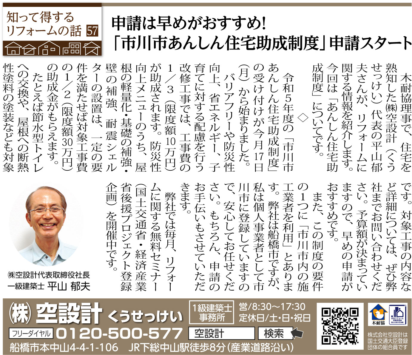57 申請は早めがおすすめ!「市川市あんしん住宅助成制度」申請スタート