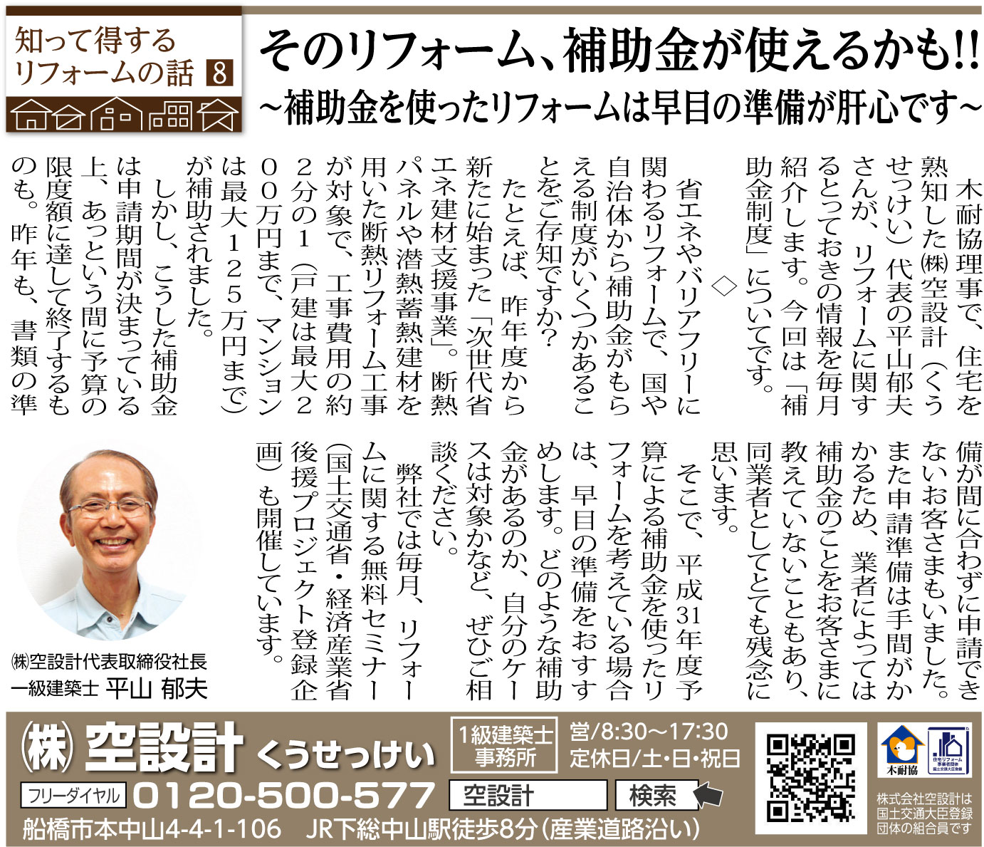 ホーム スタッフブログ 前の記事 一覧 次の記事 08 そのリフォーム、補助金が使えるかも!!~補助金を使ったリフォームは早めの準備が肝心です 2023/08/08(火) いちかわ新聞連載コラム 前の記事 一覧 次の記事 1ページ (全6ページ中) 1 2 3 4 5 6