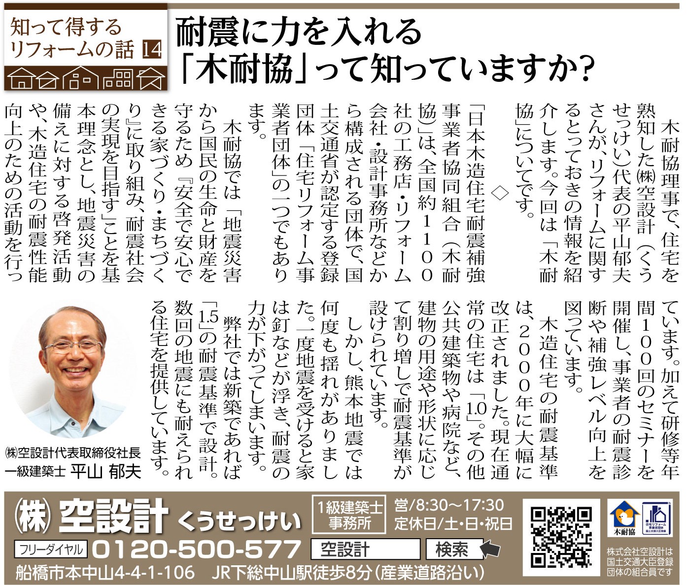 ホーム スタッフブログ 前の記事 一覧 次の記事 14 耐震に力を入れる「木耐協」って知っていますか? 2023/08/14(月) いちかわ新聞連載コラム 前の記事 一覧 次の記事 1ページ (全6ページ中) 1 2 3 4 5 6
