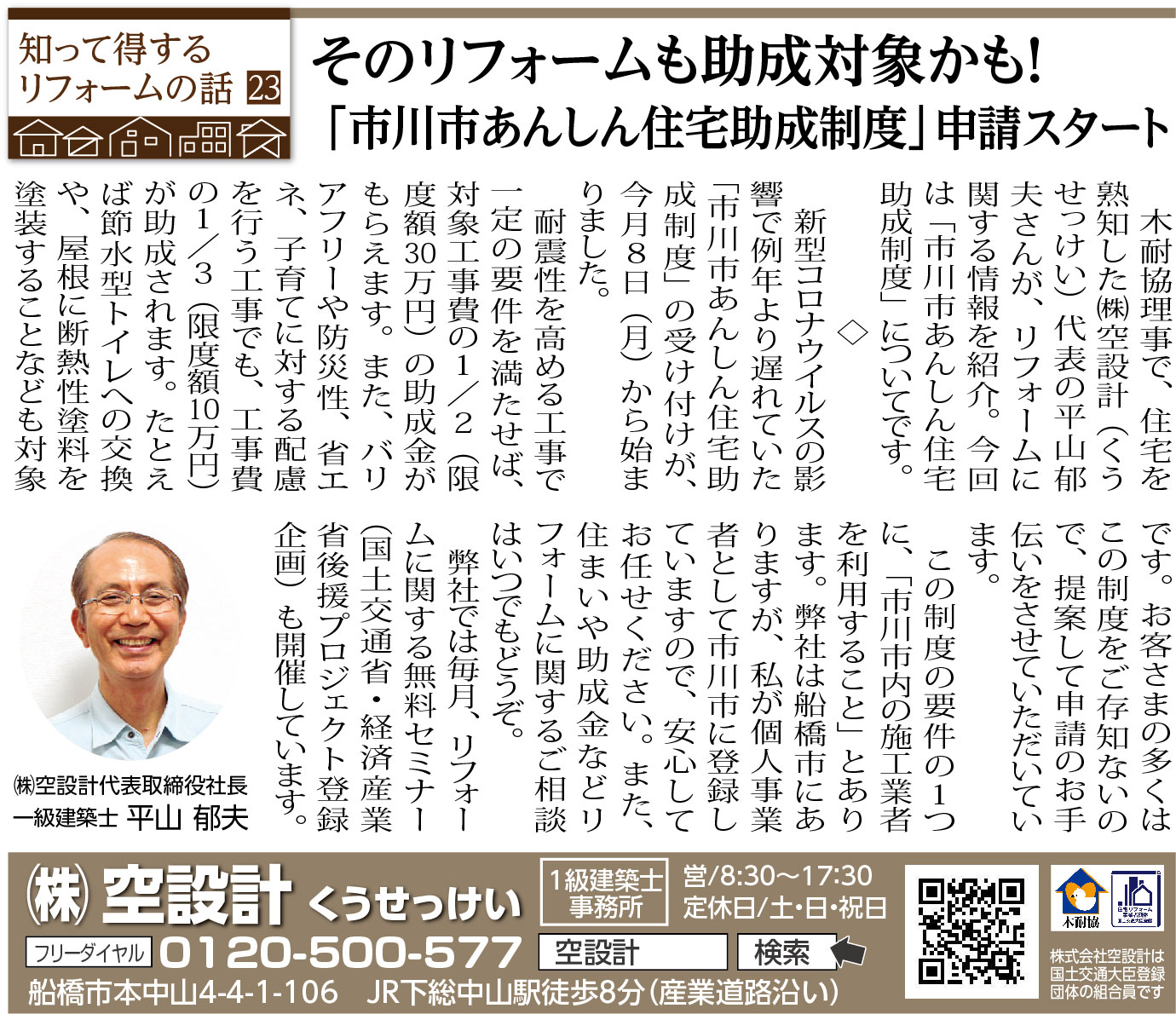 ホーム スタッフブログ 前の記事 一覧 次の記事 23 そのリフォームも助成対象かも!「市川あんしん住宅助成制度」申請スタート 2023/08/16(水) いちかわ新聞連載コラム 前の記事 一覧 次の記事 1ページ (全6ページ中) 1 2 3 4 5 6