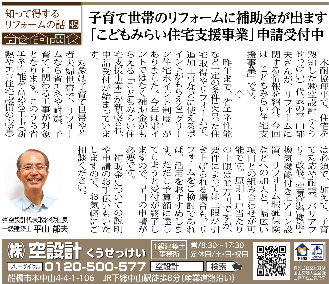 ホーム スタッフブログ 前の記事 一覧 次の記事 45 子育て世帯のリフォームに補助金が出ます「こどもみらい住宅支援事業」申請受付中 2023/08/20(日) いちかわ新聞連載コラム 前の記事 一覧 次の記事 1ページ (全6ページ中) 1 2 3 4 5 6