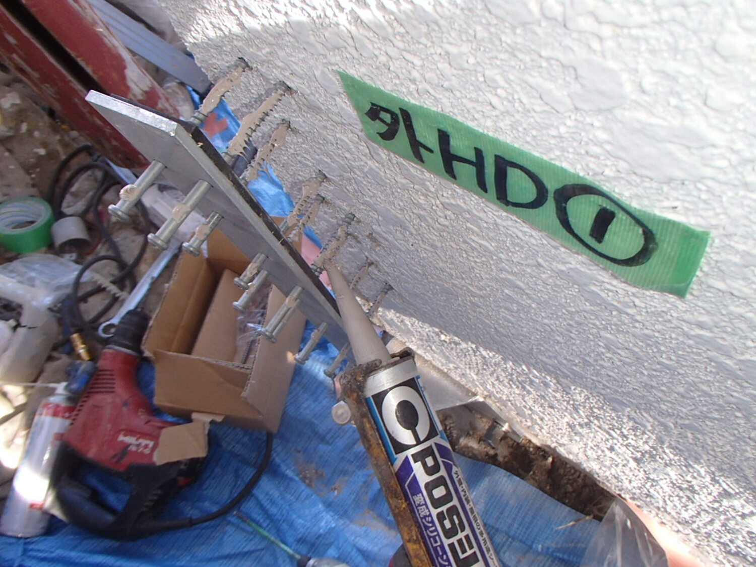 瓦からコロニアル葺き替え、1階、2階の内壁補強、外付けホールダウン、外壁塗装、バルコニー手摺、床、雨戸等