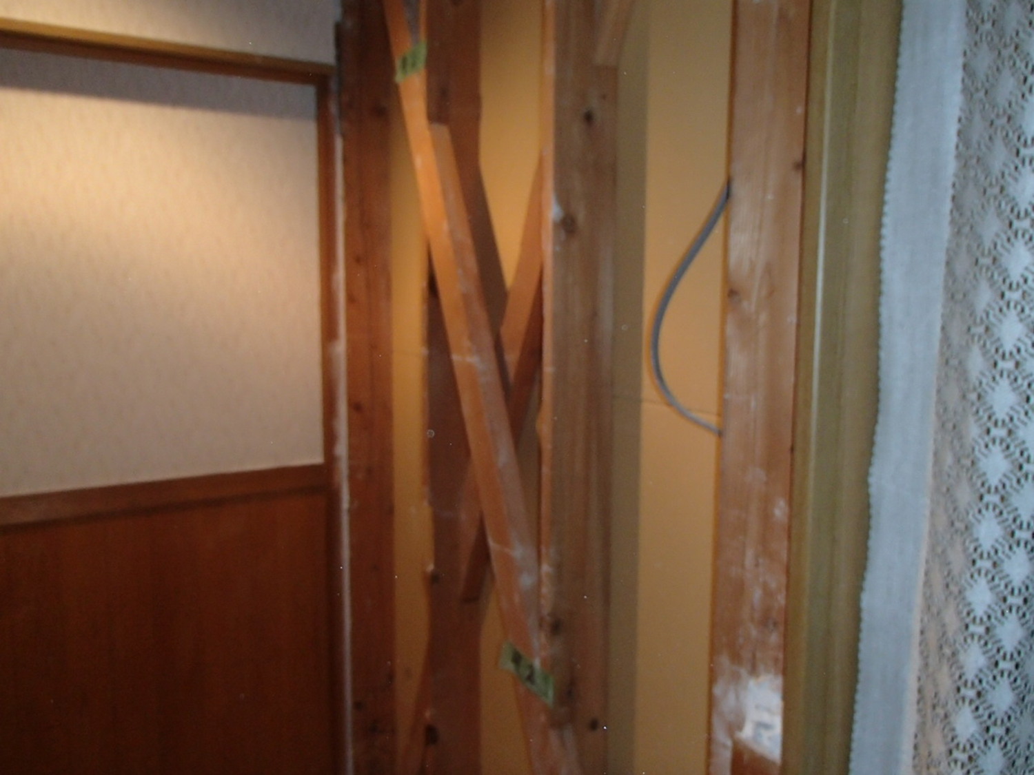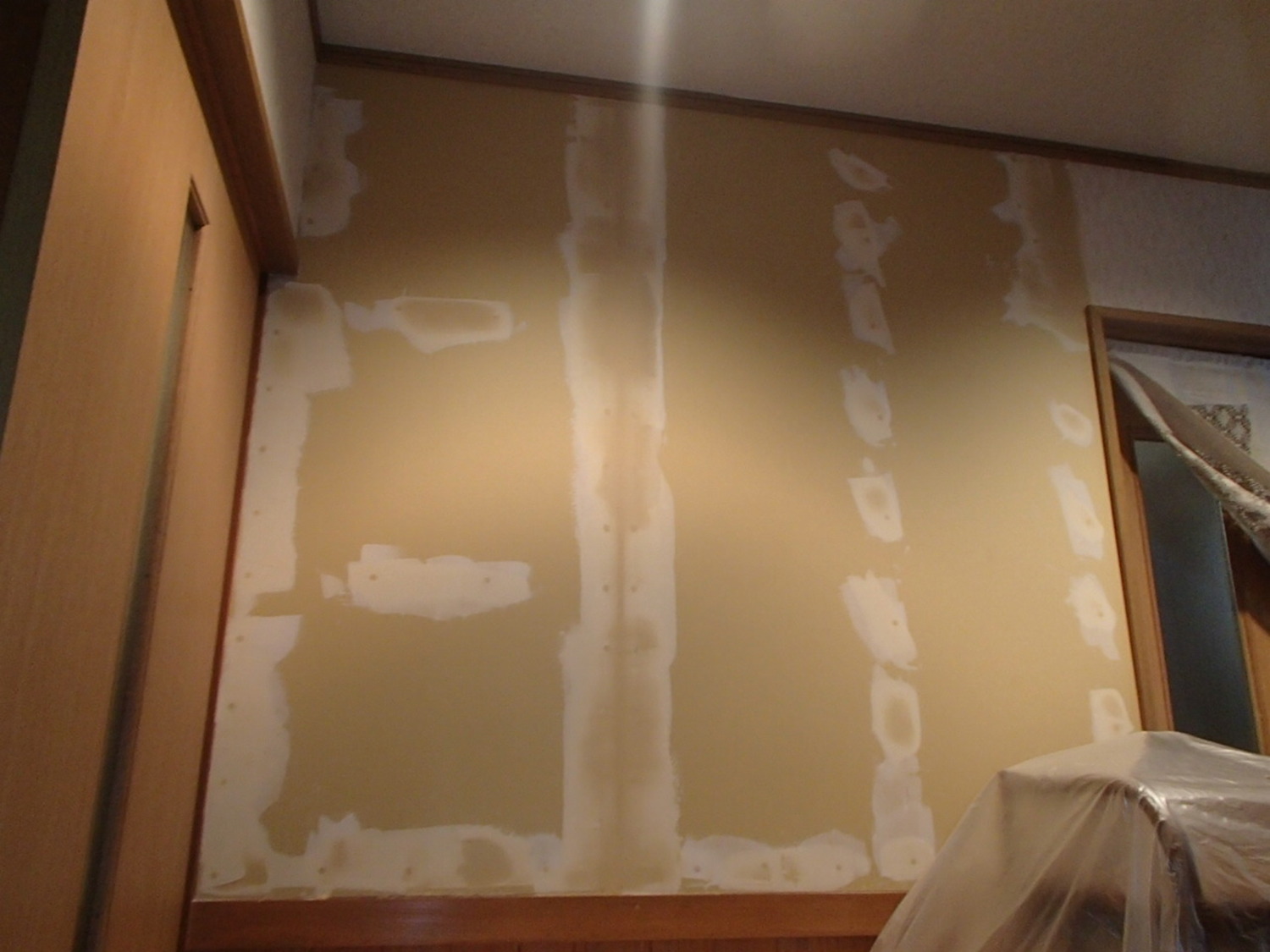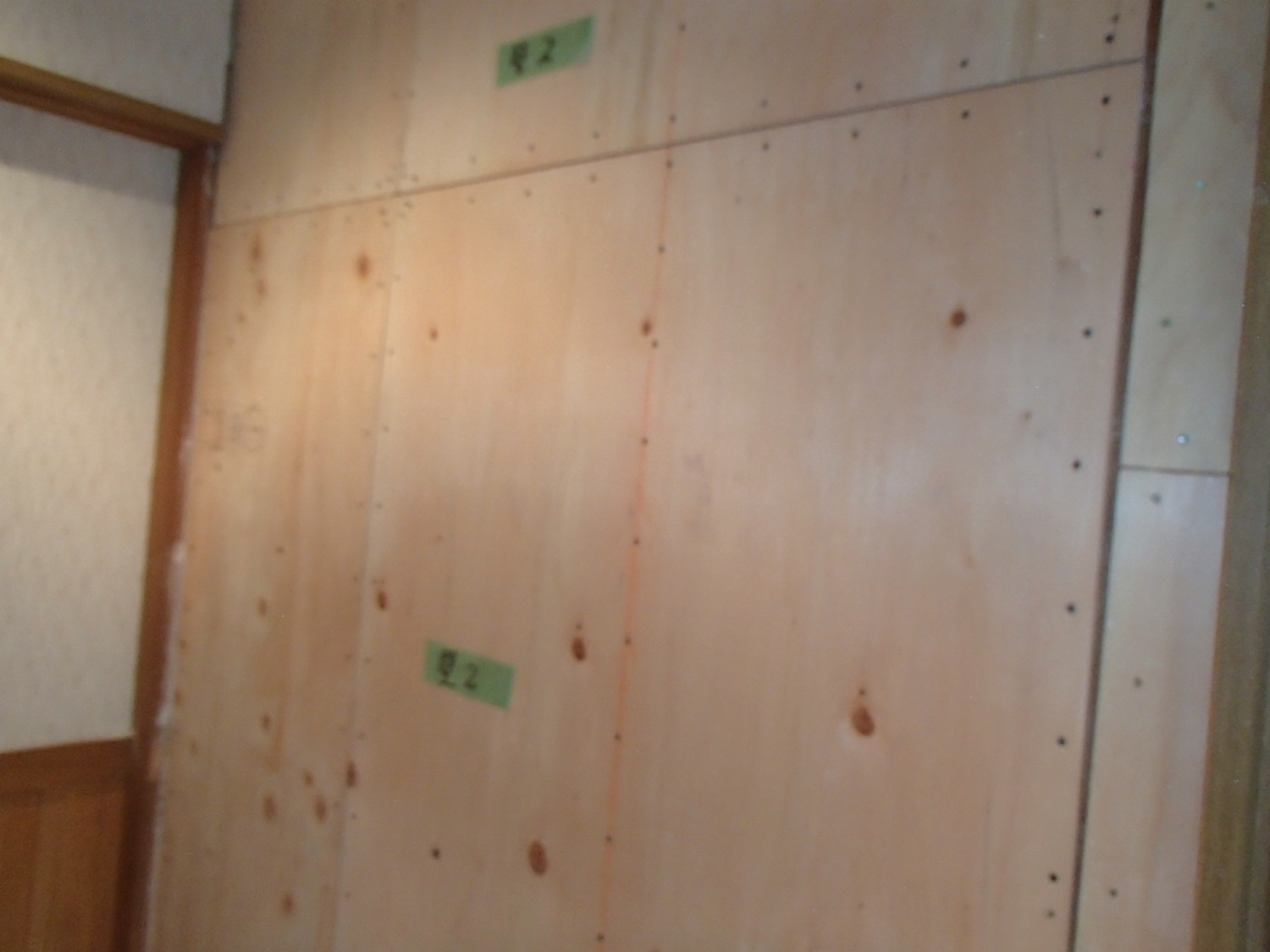 家の内壁の耐震補強、外付けホールダウンもして、耐震評点もUP、断熱性もUP。