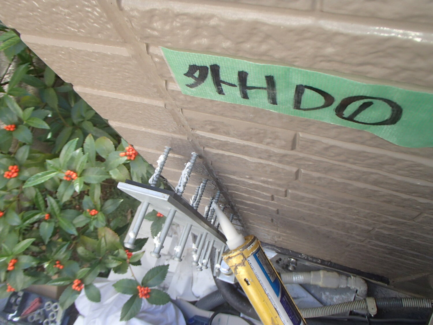 1階、2階にモイスかべつよしと、補強金物工事、室外では外付ホールドダウンを設置しました。